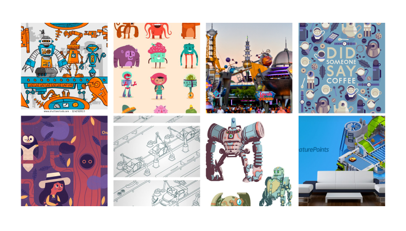 I looked at a number of posters, photographs, and illustrations for inspiration before starting to work on my piece. I knew I wanted my design to be character-driven with a kid-friendly style, so I gravitated toward artwork with simple shapes and bright colors.